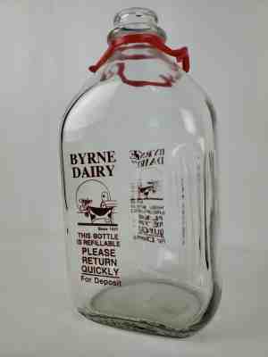 VINTAGE BYRNE DAIRY 1/2 HALF GALLON MILK BOTTLE WITH LIFTING STRAP